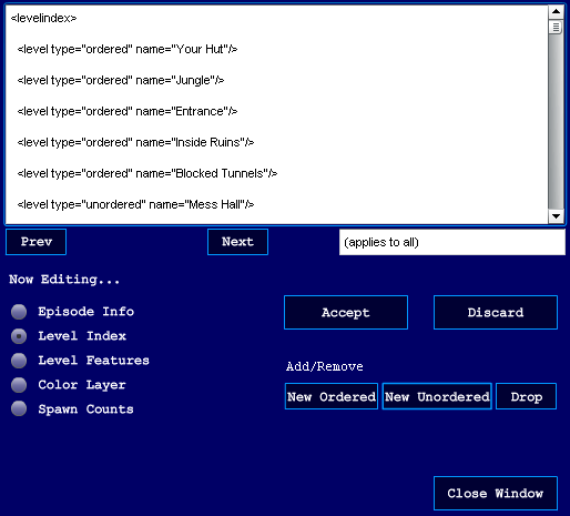 No exit stairs in unordered level. Remember, you will need at least one STAIRS type, or else one STRIGGER_STAIRS type. You could be cruel and make a dead-end level if the episode is designed in a nonlinear fashion, but this will irritate people.
