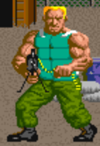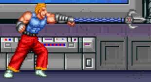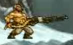 "Contra-style" sense. He doesn't have a lot of attack modes, but he never stops