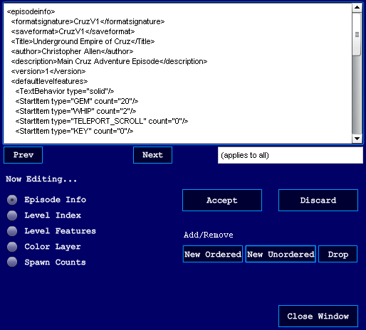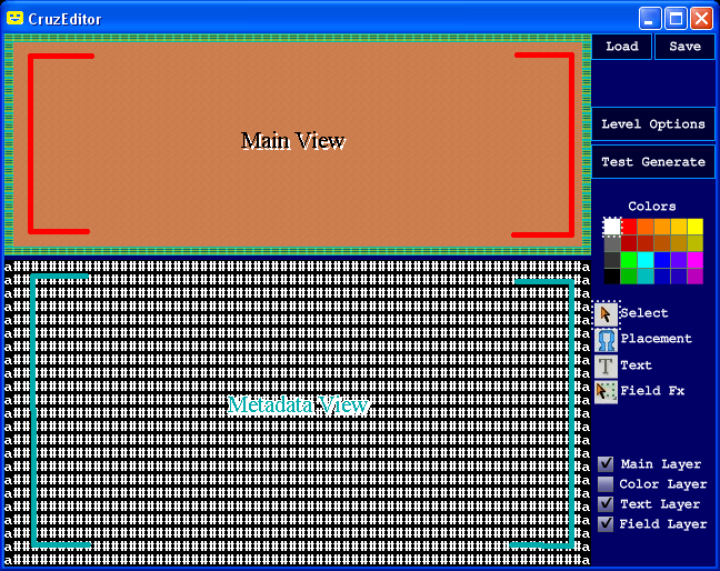 CruzEditor is an Adobe AIR application built to edit levels for the game Cruz. If you don't know what Cruz is, look it up at http://www.chriskallen.com/cruz.